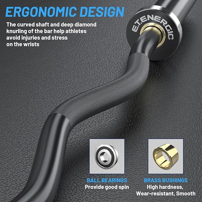 - Curved Shaft: The curved shaf, deep diamond knurling and ergonomic design of the bar helps athletes avoid injuries and stress on the wrists