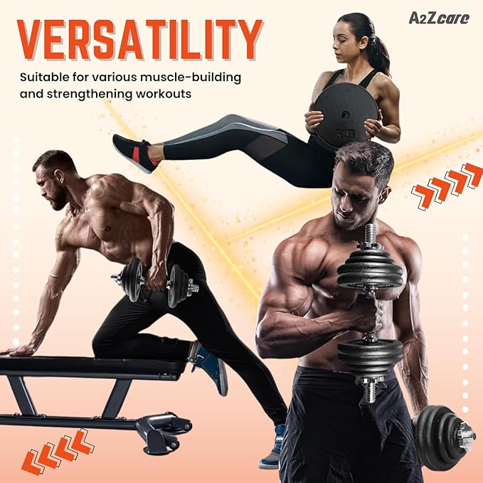 - MUSCLE STRENGTH TRAINING & WEIGHT LIFTING WORKOUTS - A2ZCare cast iron weights are suitable for most building-up and strengthening muscle workouts. You can use weight plates 1 inch hole in some exercises such as biceps curl, triceps extension, chest fly, shoulder press, and hamstring curls.