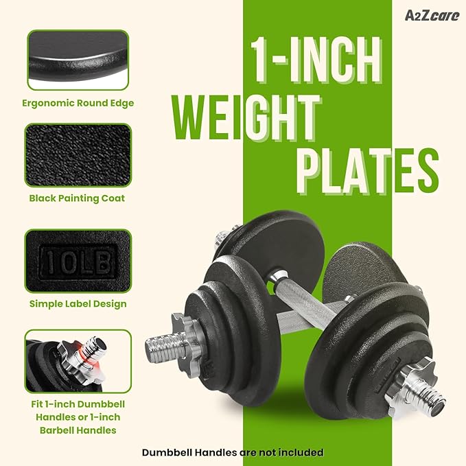 - SOLID CONSTRUCTION & DURABLE BLACK PAINT COATING - A2ZCare standard weight plates are made from high-quality cast iron with black semi-gloss painting, which help to protect dumbbell weight plates from rust and corrosion without any irritating odor.
