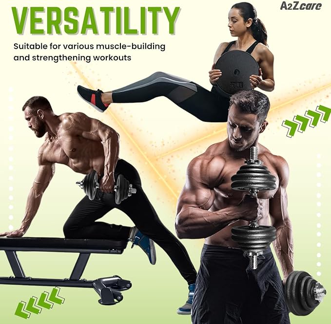 - MUSCLE STRENGTH TRAINING & WEIGHT LIFTING WORKOUTS - A2ZCare cast iron weights are suitable for most building-up and strengthening muscle workouts. You can use weight plates 1 inch hole in some exercises such as biceps curl, triceps extension, chest fly, shoulder press, and hamstring curls.