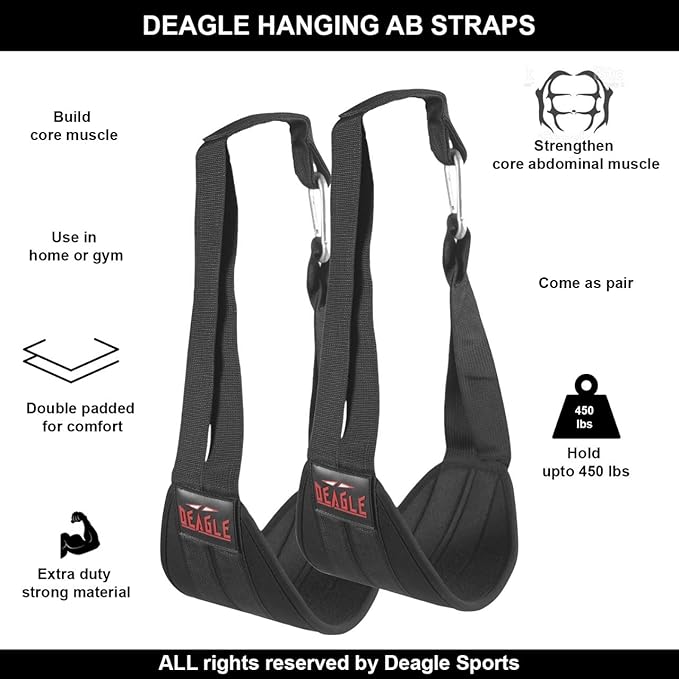 - โ ๐๐จ๐ฎ๐๐ฅ๐ ๐๐ญ๐ข๐ญ๐๐ก๐ข๐ง๐ ๐๐ง๐ ๐๐ญ๐๐๐ฅ ๐๐๐ซ๐๐๐ข๐ง๐๐ซ๐ฌ: Deagle ab exerciser has a double stitching. This ab straps hanging are equipped with steel carabiners, 1200 D heavy duty nylon straps with padded arm straps for extra comfort, Moreover, this ab trainer exercise equipment can hold up to 450Lbs.