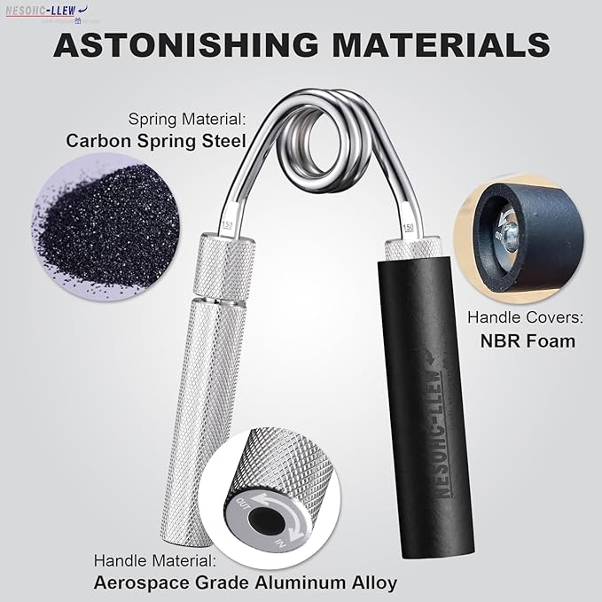- 【Premium Aluminum Alloy Handle】: Durable and comfortable, the full aluminum alloy handle of the NESOHC LLEW brand grip strengthener outperforms typical plastic products.