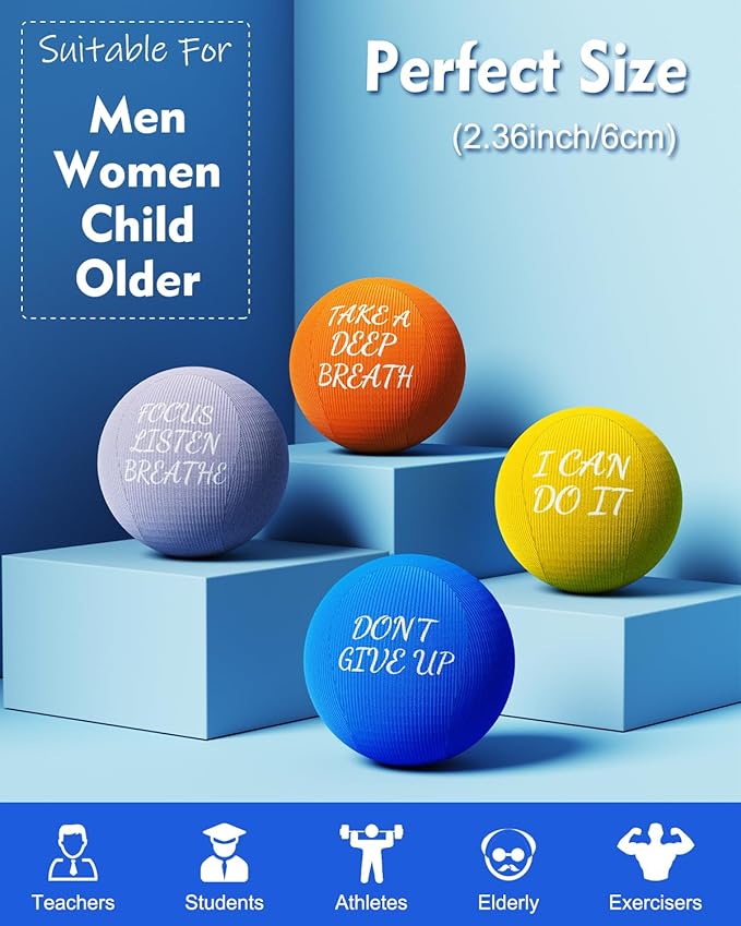 - 🎁Creative Gifts That Won’t Fade】-- The interior of the stress ball is made of tear-resistant, soft and high-quality gel, which is non-toxic and odorless. You can squeeze the stress ball with confidence. The surface of the stress ball is easy to clean, and the fonts of the inspirational words will not fade, which will relieve your anxiety and bring encouragement. It is also a creative gift for colleagues, friends, and loved ones