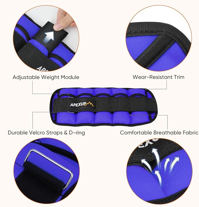 - [PREMIUM QUALITY] APEXUP adjustable ankle strength training weights are filled with iron sand to ensure a compact profile. The sleeve material of the ankle weights for men is soft and breathable, which will give you maximum comfort during workout.