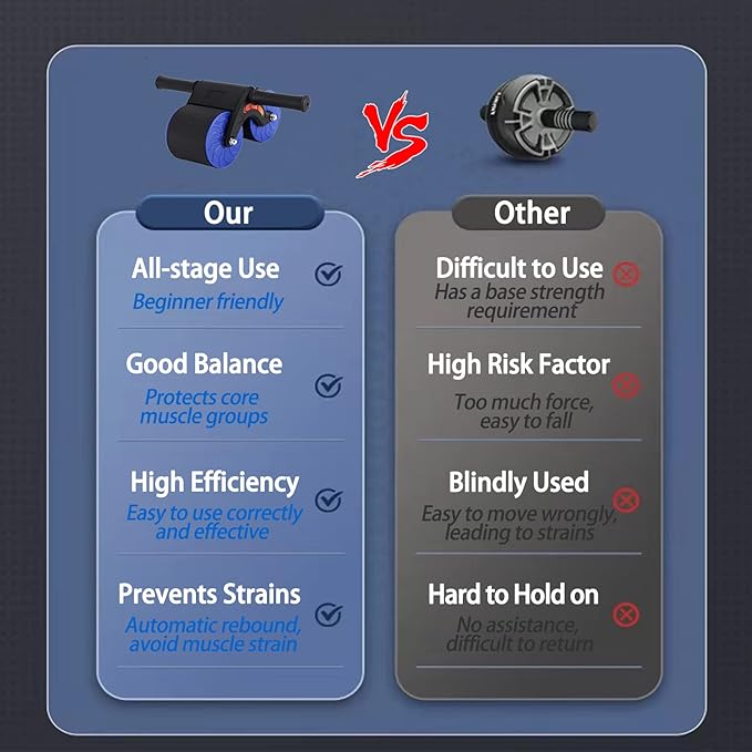 - 💪[Crush Belly Fat]Are you still worried about your belly fat? Are you still worried about the unattractive lines of your abs? Then bring home the Auto Rebound Abs Wheel! It's a precise, more challenging, and deeper exercise tool that will give you more attractive and defined lines. Let's get you crushing fat to your heart's content!