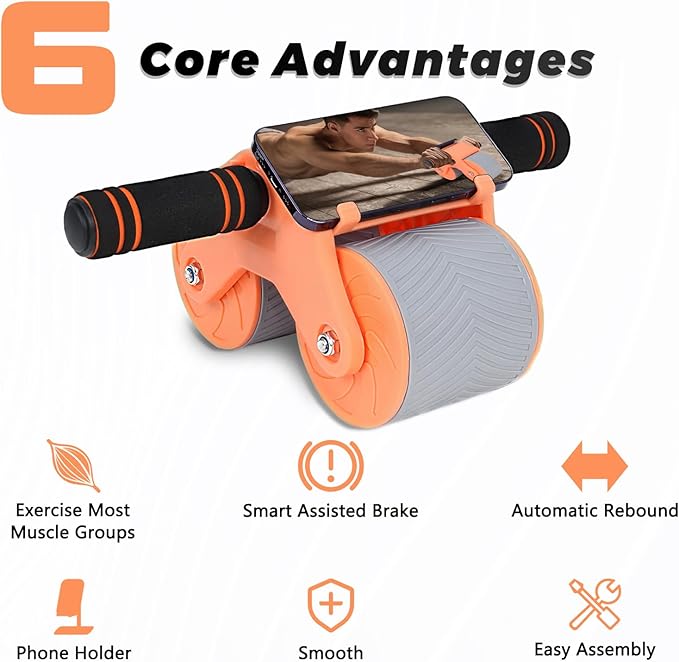 - đȘăAutomatic Rebound Abdominal WheelăAb roller wheel features intelligent assisted braking and automatic rebound design. When the abs roller is pushed to the extreme position, the rebound device not only brakes but also provides rebound assistance, This abs workout equipment can protect you from injury during exercise while reducing pressure on your wrists, shoulders and back, preventing excessive muscle stretching,and ensuring safer, more comfortable, and more effective abdominal exercises.