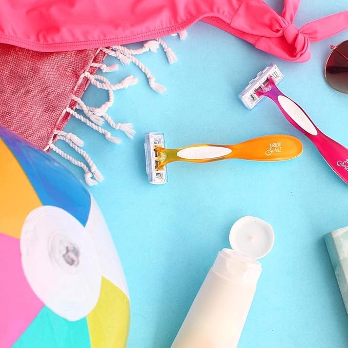 - WHAT'S INCLUDED: Pack of 8 BIC Soleil Smooth Colors Women's Disposable Razors with vibrant handles.