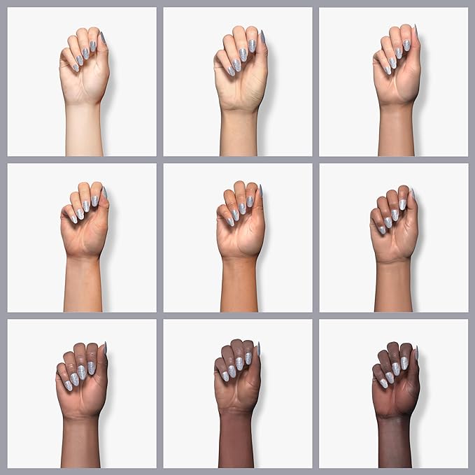 - Glossy Shine Nail Polish: This nail polish in silver glitter with a shimmer finish features our salon-quality nail color formula for flawless coverage and glossy shine.
