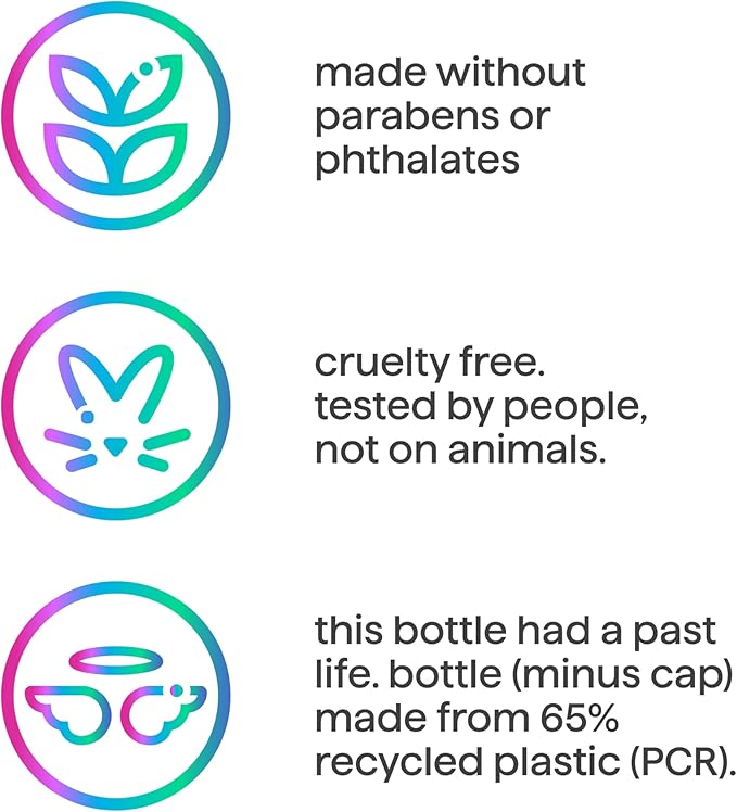 - Bottle (minus lid) made of 65% recycled plastic (PCR).