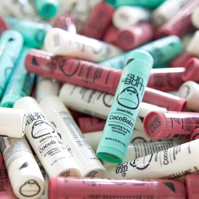 Sun Bum CocoBalm | Vegan and Cruelty Free Moisturizing Lip Balm with Aloe and Coconut Oil | Pina Colada, Ocean Mint, Groove Cherry (.15 oz) | Pack of 6 (2 of Each Flavor)