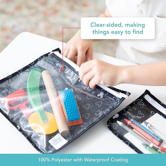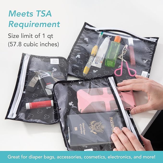 Bumkins Disney Travel Bag, Toiletry, TSA Approved Pouch, Zip Bag, Quart Size Airline Compliant, Clear-Sided, Baby, Diaper Bag Organization, Accessories, Packing, Set of 3 Sizes, Mickey Mouse Icon
