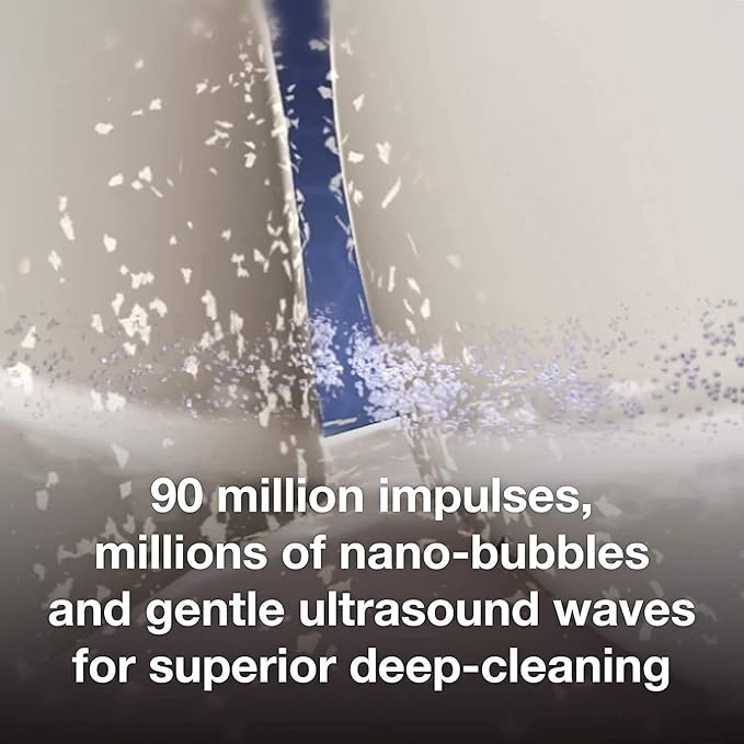 - WAVE, DON’T BRUSH – To use, spread the ultrasound activated nano-bubble toothpaste on your teeth. Hold the device head over each section of your teeth (don’t brush). A timer (beep-sound) and brief interruption of the vibration will alert you to move on to the next section after 6 seconds. The bristles serve as antennas to transmit over 90 million ultrasonic impulses per minute to give you clean, smooth teeth without abrasive brushing. Similar to the ultrasound used at dentists’ offices.
