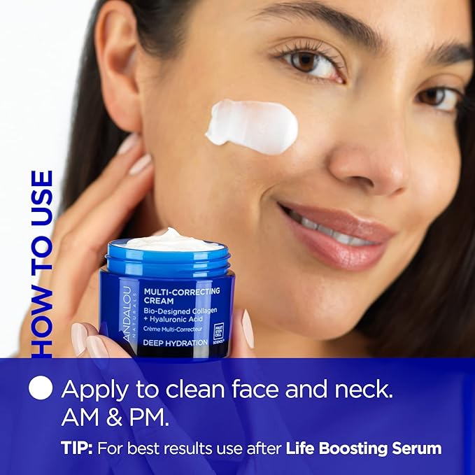 Andalou Naturals Deep Hydration Face Moisturizer, Multi-Correcting Cream, Day & Night Moisturizer for Face with Hyaluronic Acid & Vegan Collagen for Softer & More Supple Skin, 1.7 fl oz