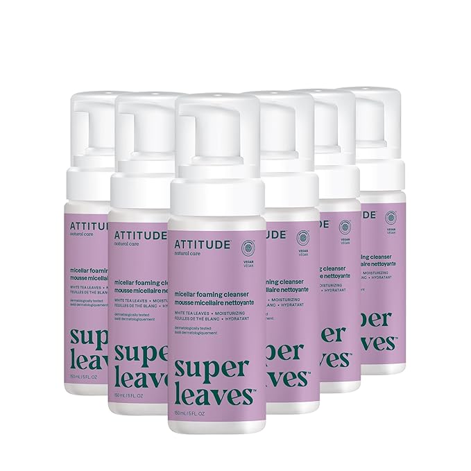 ATTITUDE Micellar Foaming Facial Cleanser, EWG Verified, Dermatologically Tested, Plant and Mineral-Based, Vegan, White Tea Leaves, 5 Fl Oz (Pack of 6)