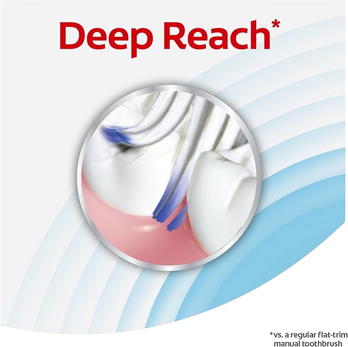- Removes more plaque for a healthier mouth (vs. a regular flat trim manual toothbrush)