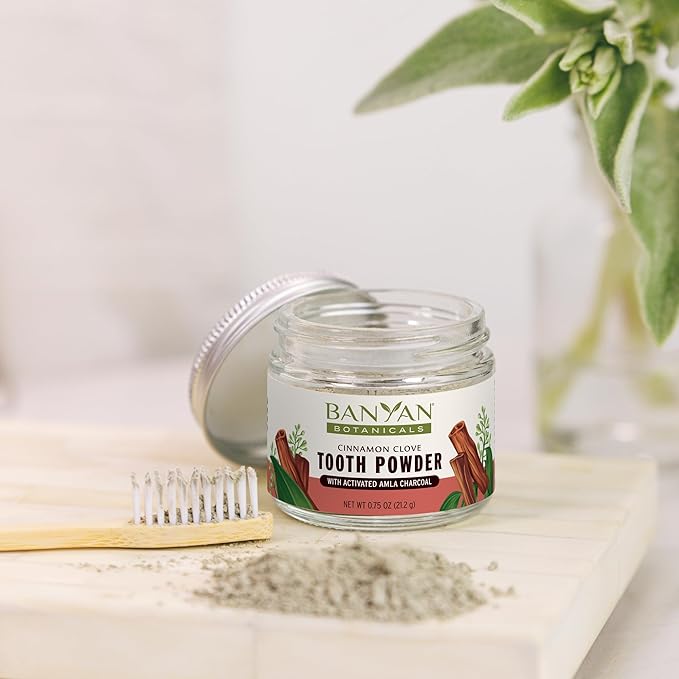 Banyan Botanicals Cinnamon Clove Tooth Powder – Ayurvedic Fluoride-Free Toothpaste Alternative with Miswak & Activated Charcoal from Amla – 0.75oz, 80+ Uses – Non GMO Sustainably Sourced Vegan