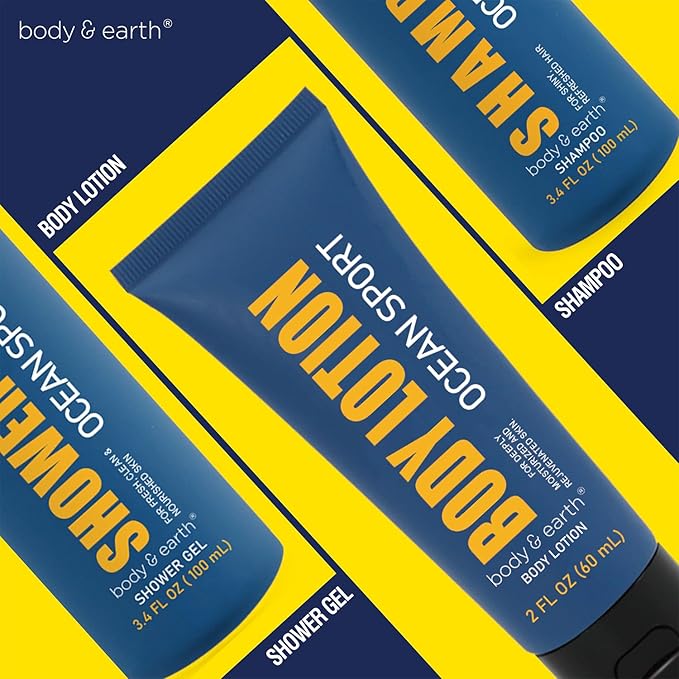 Bath and Body Gift Set for Men Body Wash Set with Fresh Ocean Scent Shower Gel, Body Lotion, Shampoo, Birthday Gifts for Men,regalos para hombre, Birthday Gifts for Him