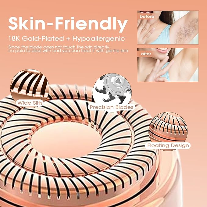 - 【The best companion for women hair removal】: Gen 2 replacement heads keep the same 18K gold-plated rose gold workmanship to provide smooth finishing and gentle touch. It fits with Generation 2 electric or battery hair remover. Outstanding performance in erasing unwanted hair on lip, chin, cheeks and sideburns.Its anti-allergic properties suitable for all skins, allows you to remove your facial hair smoother and feel comfortable.