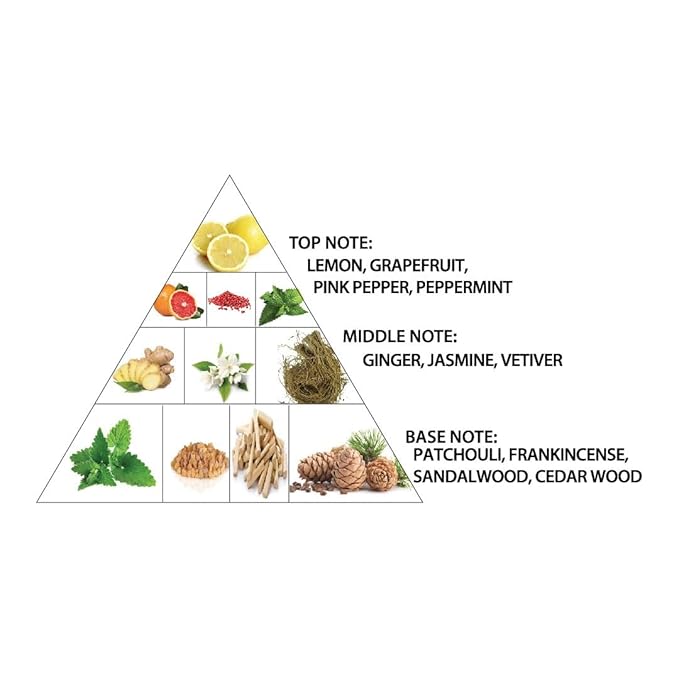 - Heart Notes - Ginger, Vetiver, Jasmine ; Base Notes - Sandalwood, Olibanum, Cedar, Patchouli.