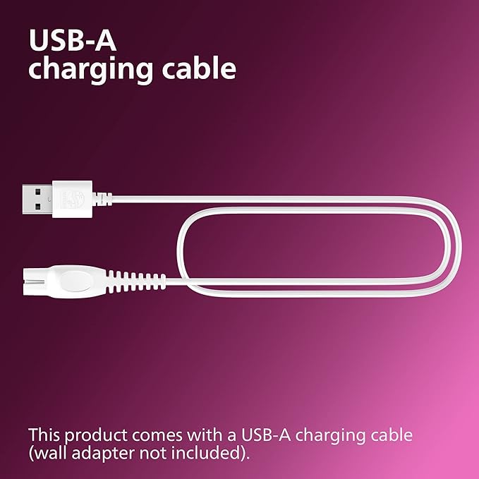 - USB-A charging cable included. (Wall power adapter not included for Lady Shaver) AA batteries included for Facial Hair Remover.