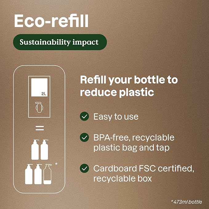- GOOD FOR THE PLANET: Eco-refills are easy to carry and to use from the comfort of your home; ideal to refill our aluminum bottle with reusable pump infinitely