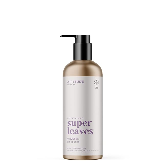 ATTITUDE Body Wash with Essential Oils, EWG Verified Shower Gel, Dermatologically Tested, Plant and Mineral-Based, Vegan Personal Care, Refillable Bottle, Peppermint and Sweet Orange, 16 Fl Oz