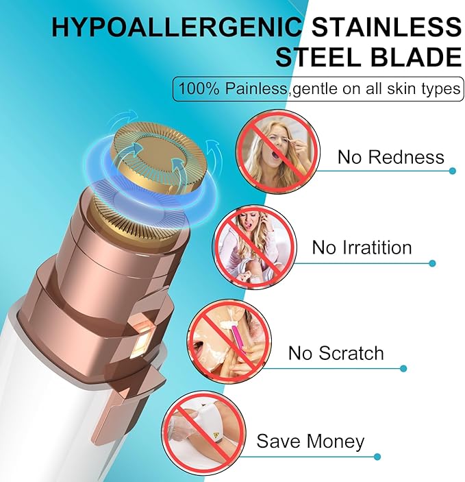 - 【Gentle & Painless】- Say goodbye to the pain caused by traditional tweezer and wax paper hair removal. Facial hair removal for women adopted with hypoallergenic stainless steel blade designed for sensitive skin, follows natural skin contours for more precise and gentle shaving without causing nicks and cuts.