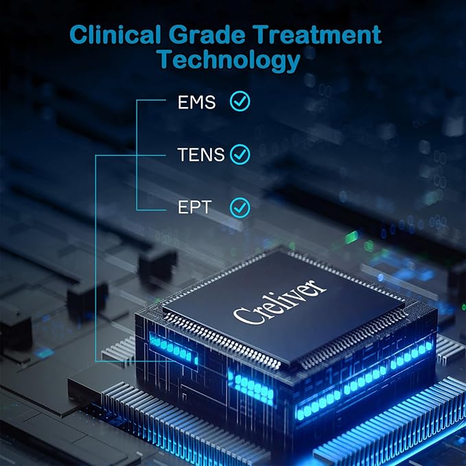 - 【EMS + TENS + EPT】Creliver can be used as a multi-functional TENS unit machine with three latest clinical technologies: electrical muscle stimulation (EMS), transcutaneous electrical nerve stimulation (TENS), electronic pulse therapy (EPT). It comes with 8 TENS unit pads, which can be attached to the painful parts of the body for local treatment and relief, and can also be used with the foot mat machine.