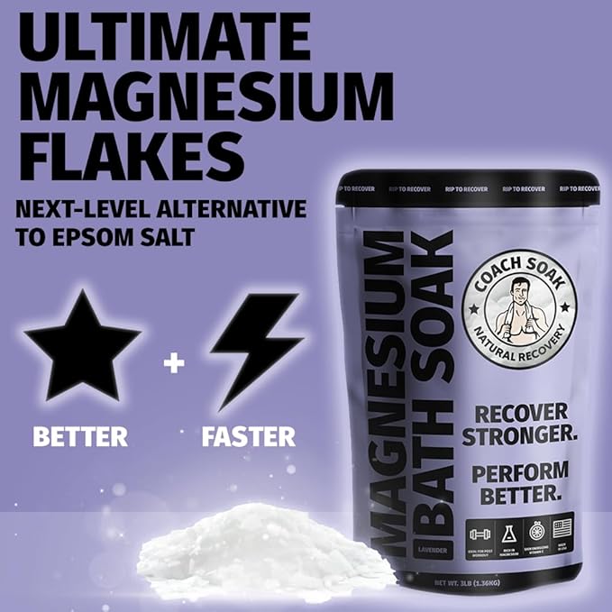 Coach Soak Recovery Bath Soak - Epsom Salts & Magnesium Flakes with Magnesium Chloride, Dead Sea Salt & Coconut Oil for Muscles - 9 lb (3 Pack) - Lavender