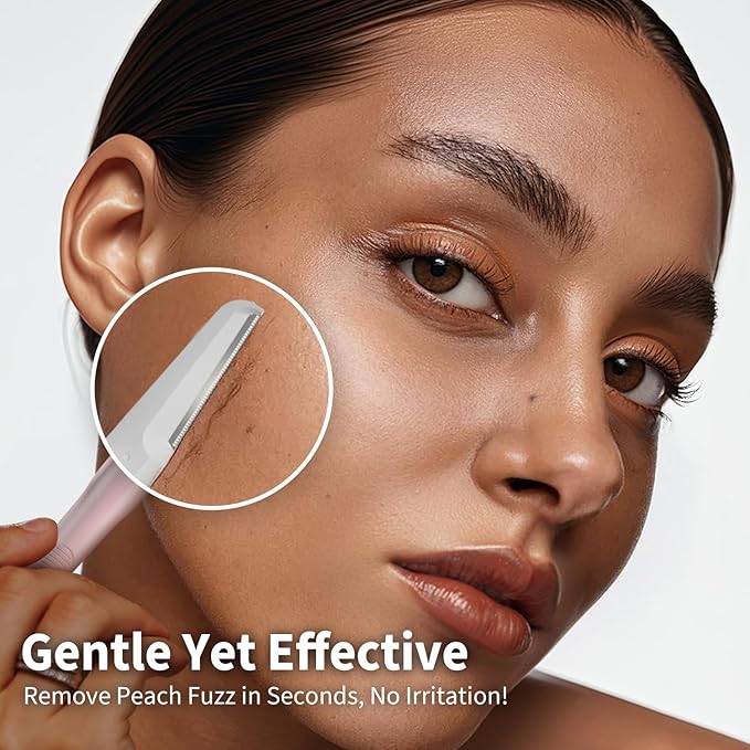 - Safety-Engineered Blades for Sensitive Skin: Specifically crafted with safety-guarded stainless steel blades, our razor effortlessly removes facial peach fuzz and dead skin cells without nicks or irritation. The angled blade protective shield ensures smooth gliding, making it ideal for delicate areas like cheeks, brows, and neck. It can also be used for hair removal on arms, legs or bikini line
