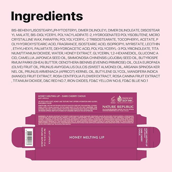 Nature Republic HONEY MELTING LIP (08 DARK CHERRY CHOUX) SOFT LIP STICK, Hydrating Gloss, Moisturizing balms, Sheer tint, Shine & Nude, Glowy Finish, korean make up