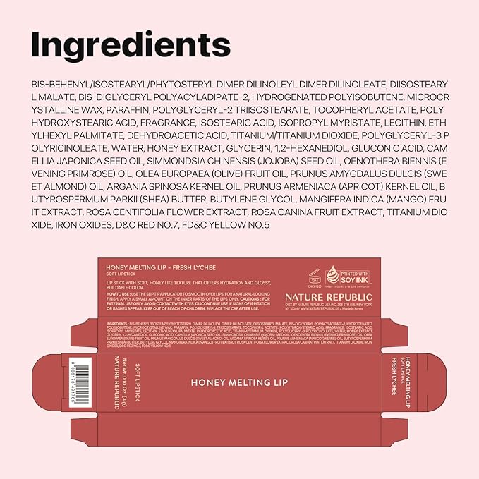 Nature Republic HONEY MELTING LIP (07 LYCHEE) SOFT LIP STICK, Hydrating Gloss, Moisturizing balms, Sheer tint, Shine & Glowy Finish, korean make up