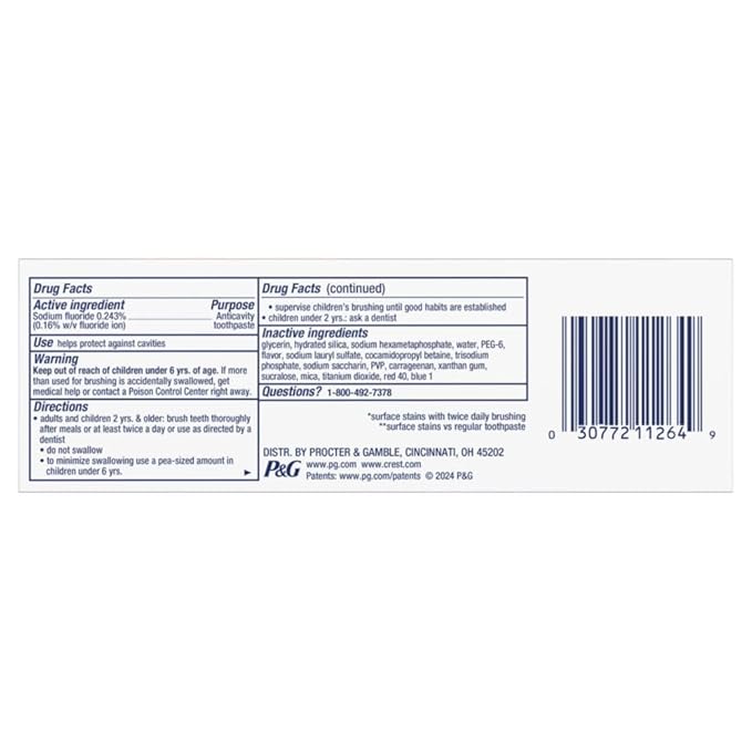 - 24-HOUR PROTECTION: Provides 24-hour active stain prevention against surface stains with twice-daily brushing using Crest 3D White toothpaste.