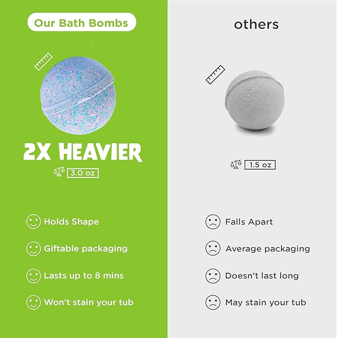 - [Sensory Fun with Bath Slime] Transform bath time into a spectacular, slimy bath adventure! Each bath bomb fizzes and froths, unveiling a hidden core of colorful, gooey slime, making bath time a fun and exciting experience. Enhance tactile skills with the smooth, squishy texture of slime that's perfect for sensory play for the young minds.