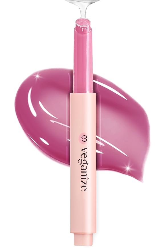 SELF BEAUTY Veganize Collagen Lip Glass Balm | Hydrating Lip Balm in 9 Vibrant Colors | Moisturizing Lip Care Infused with Collagen Jelly Magic | No Animal Trial Lip Balm 0.06 oz (#7 Pale Petal)