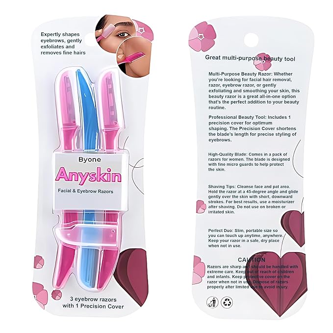 BYONE Razor, Face Razors for Women, Facial Hair Removal, Dermaplaning Tool, Exfoliator & Shaver for Smooth Skin, Microblades, Peach Fuzz Remover Eye Brow Trimmer, Eyebrow Blades, Beauty Shavers