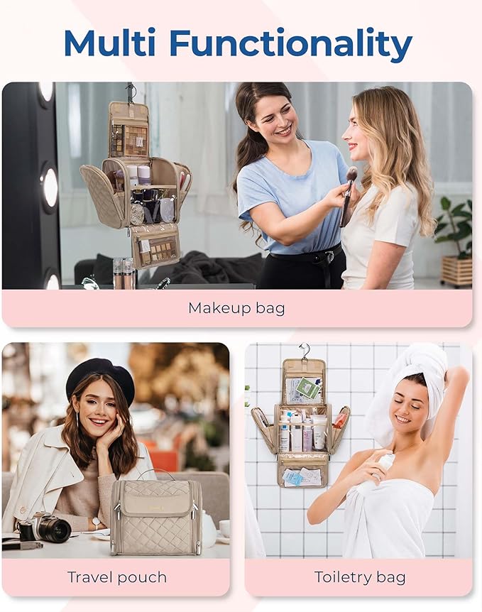 - 【Multi-functional Makeup】: This portable hanging makeup bag is a multifunctional organizer bag that combines the functionality of a makeup bag and a travel toiletry bag. It is an excellent choice for a wide range of activities, from travel, business trips, fitness routines, and beach outings to picnics and home storage. It also makes for a perfect gift for ladies, friends, and family on special occasions such as birthdays, Christmas, and Valentine's Day.