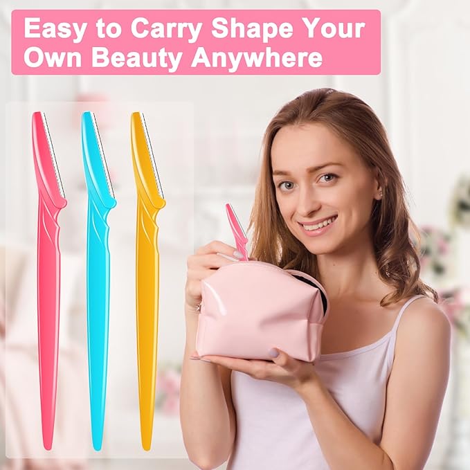 - 【EASY TO CARRY】Made of high-quality plastic, sharp stainless steel blades, and resin, the dermaplane razors are very lightweight and each comes with a protective cover, making them easy to carry and suitable for storage in a makeup bag, making it convenient to adjust eyebrow shape at any time during travel.