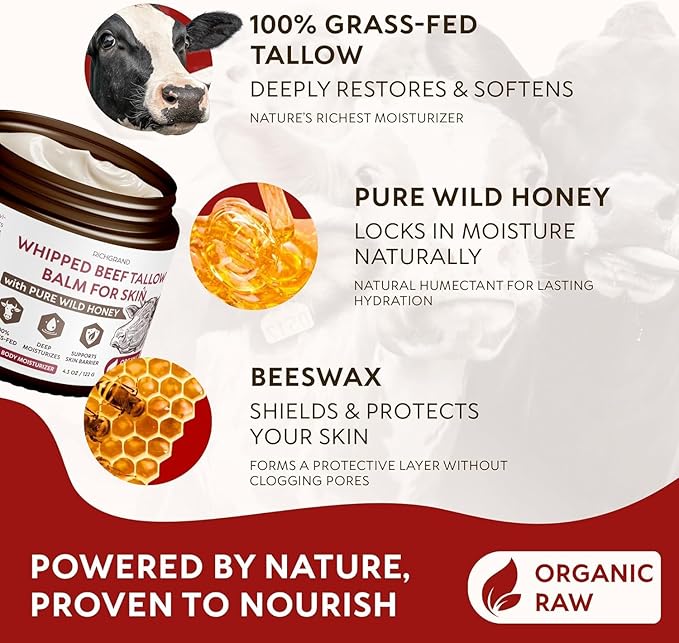- Nutrient-Rich Synergy: Powered by grass-fed tallow, wild honey, and beeswax, it locks in moisture, restores skin’s barrier, and promotes natural collagen production