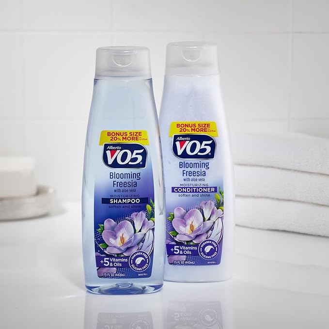 Alberto VO5 Blooming Freesia Revitalizing Conditioner - Hair Conditioner Formulated with Essential Vitamins and Oils - Fresh Floral Fragrance - 15 oz (Pack of 4)