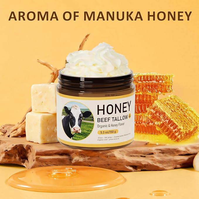 - 【Versatile for whole-body use】Our honey-scented beef tallow for skin is ideal for every part of your body, from the face to the hands, legs, and back. Infused with the soothing aroma of honey and a smooth, butter-like texture, it offers unparalleled comfort and a luxurious feel. Perfect for daily use, this cream deeply hydrates the skin. The lightweight, honey-enriched formula absorbs quickly, leaving no greasy residue behind.
