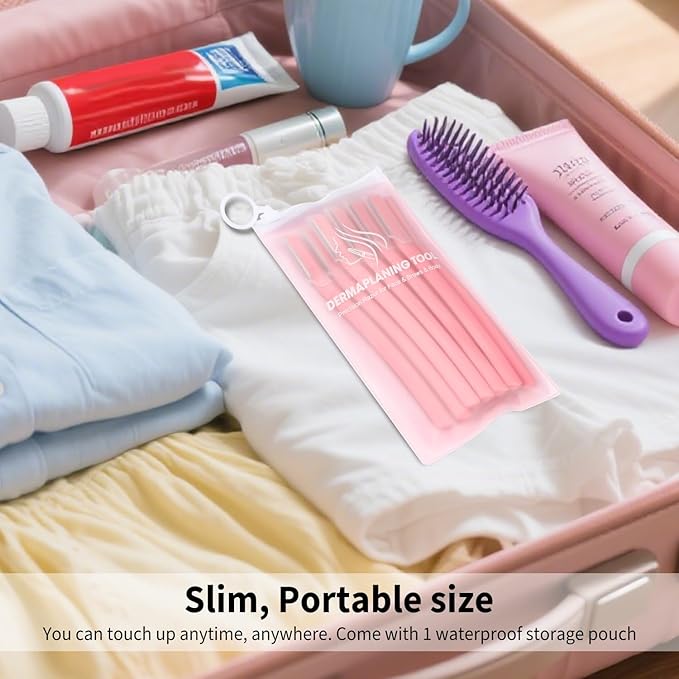 - Travel-Ready Design with Storage Pouch: Compact and TSA-friendly, the razor fits seamlessly into makeup bags or luggage. The included waterproof travel pouch keeps blades hygienic and organized—ideal for gym-goers, busy moms, or globetrotters seeking perfect skin on the go. Treat your loved ones to a thoughtful present. This Dermaplaning Tool is a practical choice for women seeking on-the-go facial care, making it a perfect addition to any beauty routine