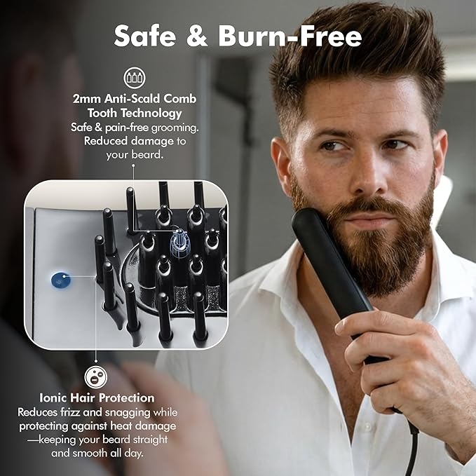 - Ionic Hair Protection: Reduces frizz and snagging while protecting against heat damage - keeping your beard straight and smooth all day.