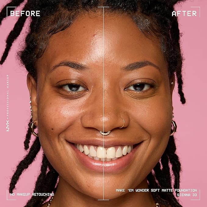 NYX PROFESSIONAL MAKEUP Make 'Em Wonder Liquid Foundation, 24HR Foundation Makeup With A Soft Matte Finish, Buildable Full Coverage - 33 Sienna