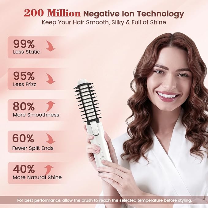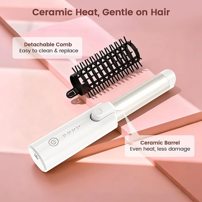 - 【3-in-1 Styling Brush】This cordless curling brush combines straightening, curling, and volumizing in one tool. Detachable comb design lets you switch between soft 1.5” waves and tighter 1.25” curls for versatile everyday styling.