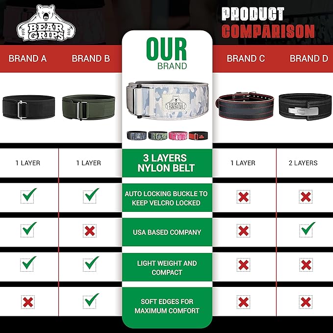 - ππππππ πππππ: Our squat belts for men combine a premium nylon finish on the outside with vegan leather on the back and sandwich a layer of soft cushion padding in between. This unique triple-layer design of our weighted belt strength training equipment enhances both support and comfort. The cushion padding provides the perfect balance between the rigidity and comfort of our weight lifting belts making your workouts more enjoyable and effective