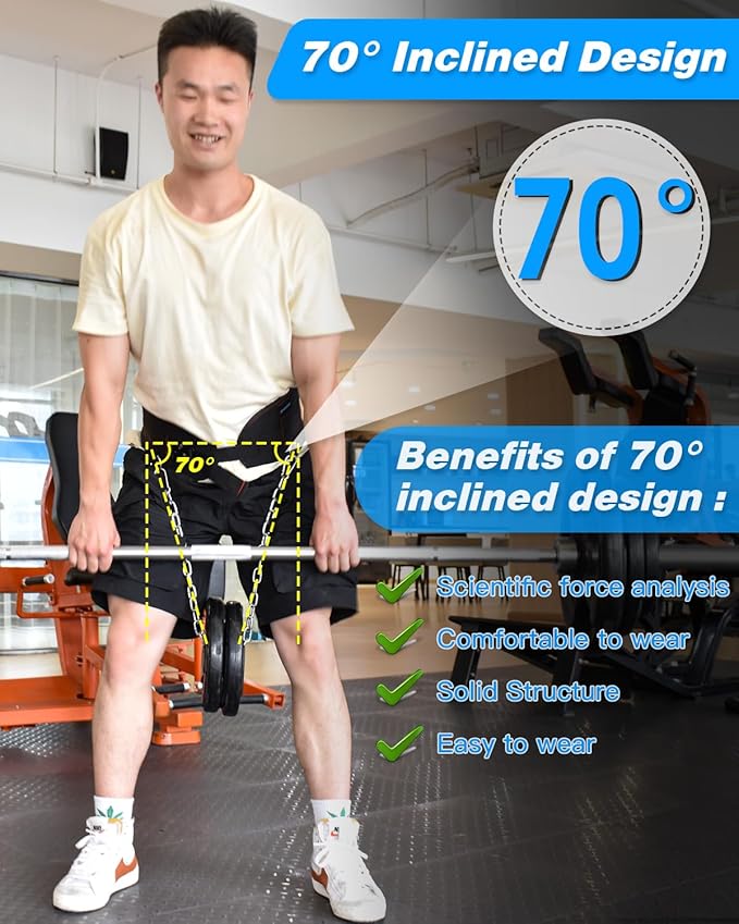 - 🏋🏻♂️【INNOVATIVE CONNECTION】 The sagging design with an included angle of 70°, instead of the traditional vertical drop, makes the load under the belt conform to Newtonian mechanics, making it more comfortable to wear and more scientific in terms of force.