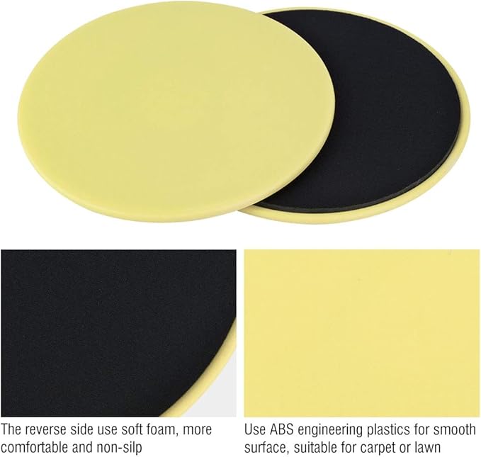 - Versatile Surface Compatibility: These gliding discs are made of ABS, which are suitable for use on various surfaces including wood, carpet, rug, or tile, offering versatility and flexibility in your workout environment.