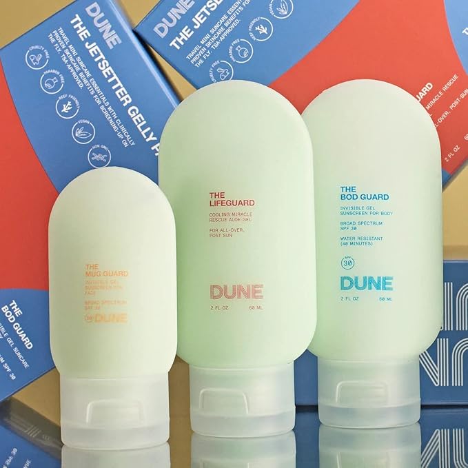 Jetsetter Gelly Pack Mini Travel Set - 7x Award-Winning Dermatologist Recommended Clear Gel Suncare for Face and Body - Bod Guard (2 Fl Oz), Mug Guard (1 Fl Oz), and Life Guard (2 Fl Oz)