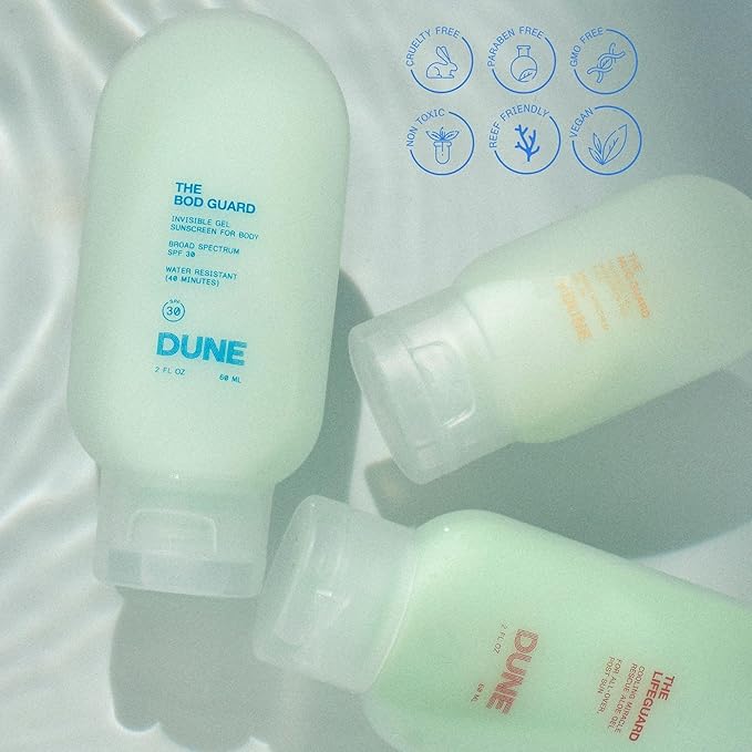 - The Bod Guard (2 Fl Oz): Embrace 72 hours of intense hydration that your bod will love with our 2 Oz travel size full body sunscreen. The SPF 30 weightless gel sunscreen glides on like butter and absorbs instantly while helping improve your skin’s elasticity, tone and texture.